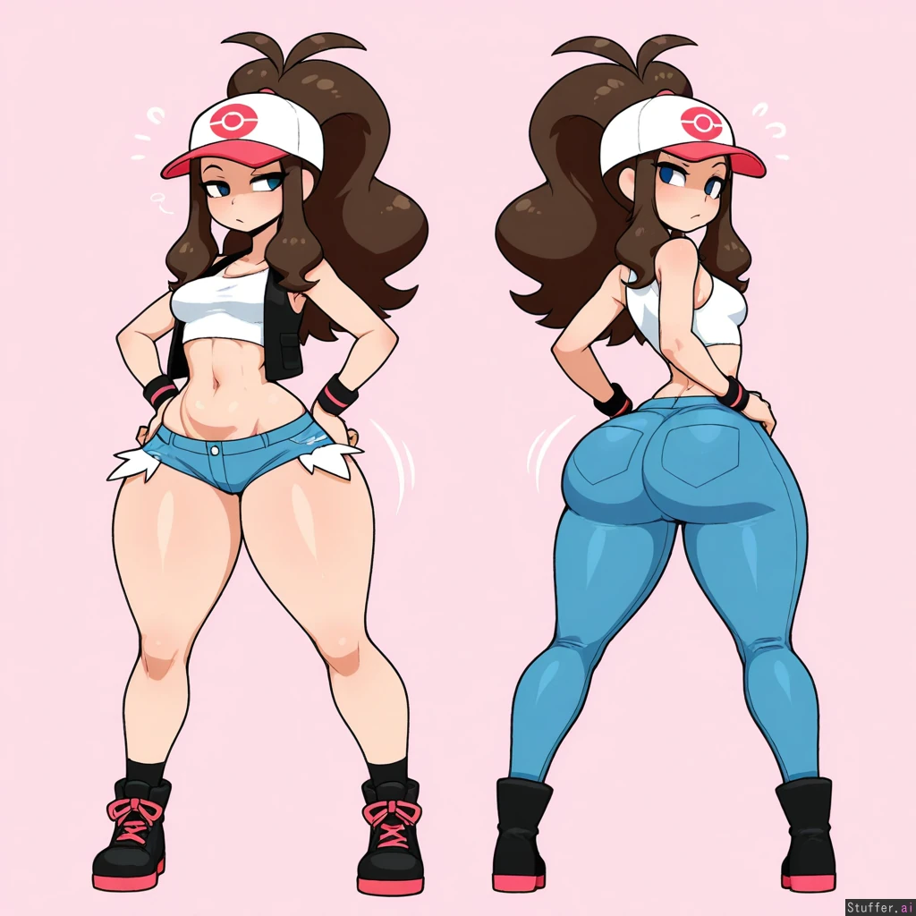 merunyaa, usa37107692, nyantcha, limebreaker, ohasi_art, krekkov, betterwithsalt, (Beautiful Face), (Half Open eyes), (Beautiful eyes), (Seductive), (small breasts), (thin upper body), (extremely_toned_body),(gigantic_fat_thighs), (big_fat_ass), (enormous wide hips), (gigantic_fat_thighs), (hyper ass), hilda_(pokemon) , fully_clothed , flat_belly , thin_waist , hyper_hips , cameltoe , wide_stance , wide_ass , wide_hips , thick ankles , bottomheavy , one character, one female ,