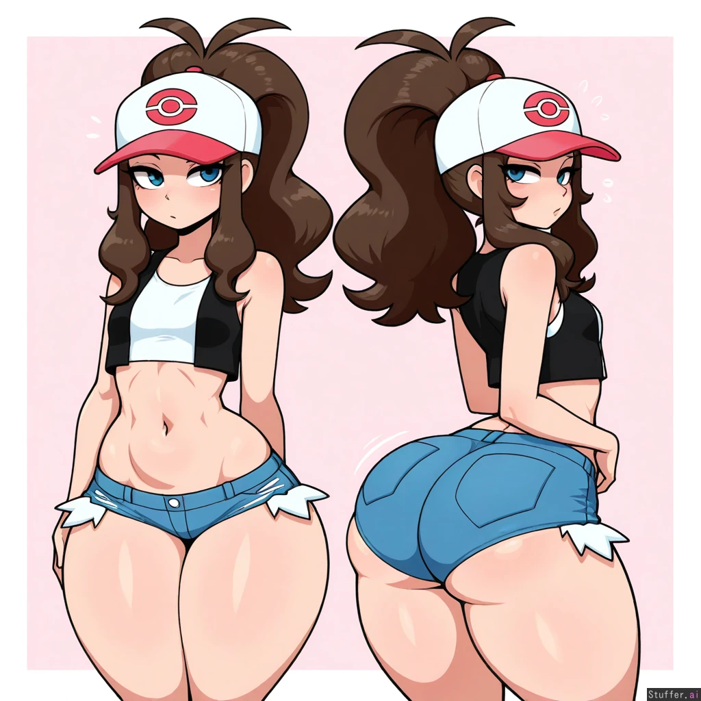 merunyaa, usa37107692, nyantcha, limebreaker, ohasi_art, krekkov, betterwithsalt, (Beautiful Face), (Half Open eyes), (Beautiful eyes), (Seductive), (small breasts), (thin upper body), (extremely_toned_body),(gigantic_fat_thighs), (big_fat_ass), (enormous wide hips), (gigantic_fat_thighs), (hyper ass), hilda_(pokemon) ,