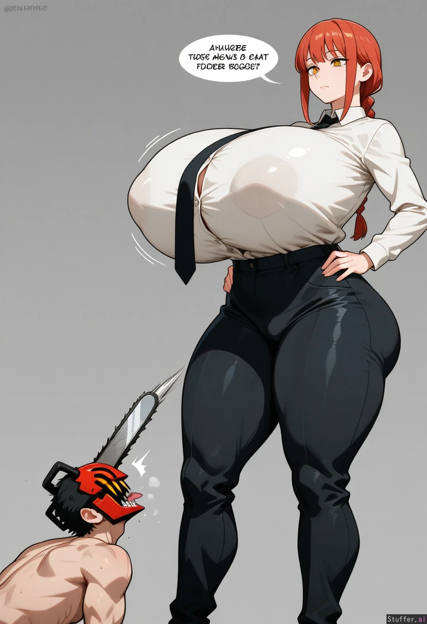 1girl, 1man, Makima_(Chainsaw_man), boobsmothering, gigantic boobs, overflowing,