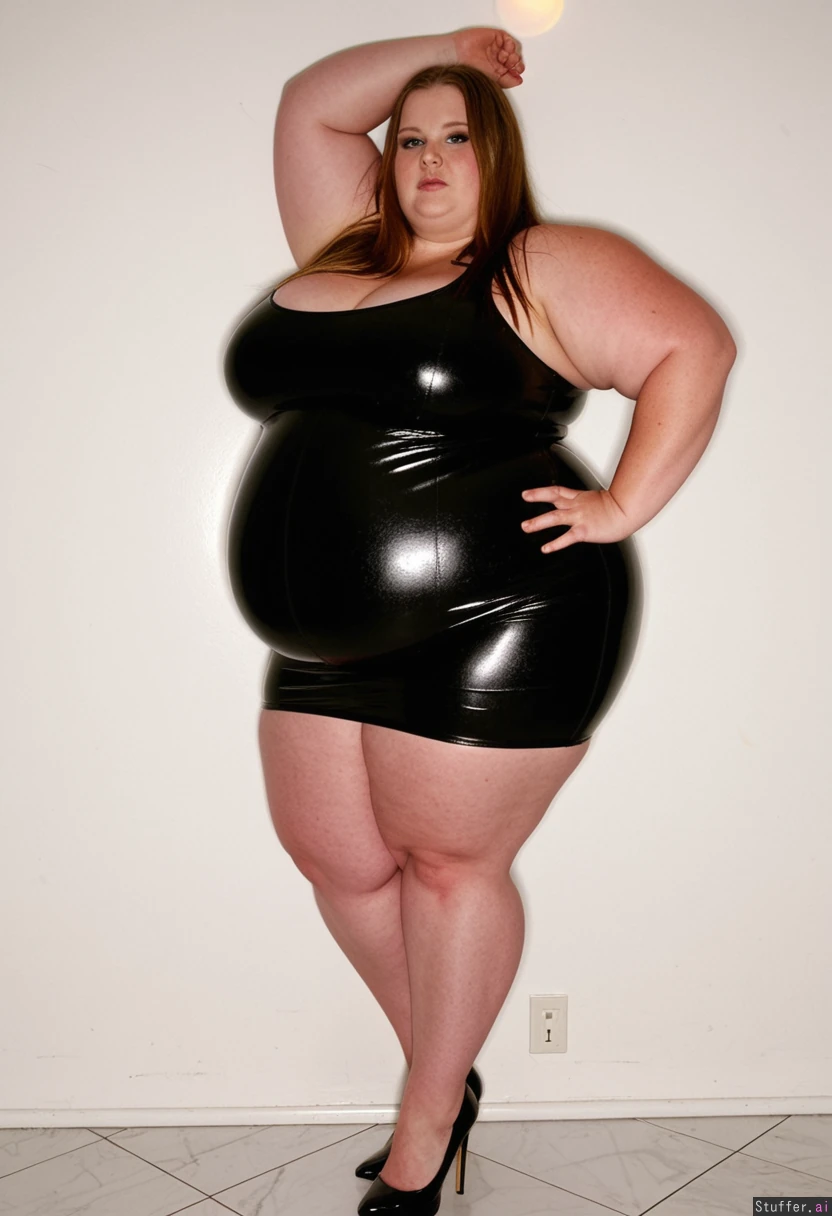 ((ultra hyper SSBBW)), (tall), ((obese)) wide arms, legs, thighs, hips, belly, chest, shoulders, underarm, forearms,) high heels, skintight dress, shiny clothing, excellent lighting, beautiful face, long hair, caucasian, nordic