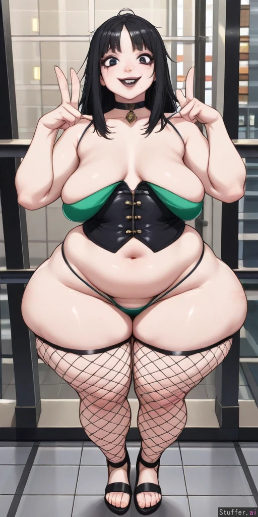(((tall big booty white girl raver giving peace sign in downtown alleyway at night))), (((nighttime))), (((US urban))), fluorescent lightposts (((1girl))) (((terrified 1.6))), (((crying 1.1))), (((forced smile 1.1))), (((wide eyed fear 1.1)) (((simple style 1.9))), (((flat colors 1.9))), (((simple render 1.9))), (((flat light))), (((heavy line weight 1.6))), (((perfect anatomy 1.6))), (realistic anatomy 1.1) (((perfect perspective 1.6))) perfect quality, flawless, masterpiece, auteur (((no text 1.6))) (((tall 1.6))), (((hyper detailed realistic face 1.6))), (((puffy lips))), full lips, (((plump lips))), full lips, (((thick messy black eyeliner))), (((running mascara 1.6))), (((black lipstick))), (strong nose bridge), (strong jawline), (((elegant sexy face))), strong cheekbones, (((beauty mark))) (((hyper bottom heavy 1.6))), (((obese))), (((ssbbw))), (((cellulite 1.6))), stretchmarks, (((hips wider than shoulders 1.9))), flabby, chunky, dimpled fat, (((hyper narrow waist 1.6))), (((extremely wide hips 1.6))), (((huge meaty massive thighs 1.6))), ((( flared hips 1.6))), (((hip dips 1.6))), (((heavy sagging fat 1.6))), (((childbearing curvy hips 1.6))), (((huge heavy thighs))), (((full sagging breasts))), veiny tits, (((massive sagging ass))), fat ankles, fat upper arms (((sagging hanging fat ass & thighs))), (((childbearing hips 1.6))), (fertility goddess) neon green bikini top, (((g string))), (((black corset))), (fishnet stockings), chunky pump sandals, choker, ((((clothes pinching))), (((bulging fat))) (((small stomach 1.9))) (((front view, facing viewer))), (((view from above 1.1)))