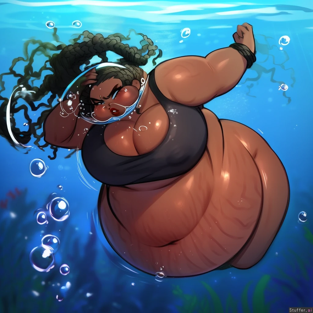 best quality, high rating, 1 african girl, (dark skin),(doja cat:1.5), c.cu(artist), spellsx(artist), midnitemorty(artist), long black_colored fro hair, dreads, pregnant bbw, ((leshawna total drama)), long eyelashes, chubby thighs, ((big butt:1.5)), (very wide hips), ((large voluptuous natural breasts)), bursting breasts, bloated, soft skin, tanned skin, curvy, chubby arms, very chubby face, adult, (large cleavage:1.5), blushyspicy(artist), worried look, (huge flabby belly), hanging belly, deep navel, (make-up:1.2), ((deep underwater, bouncing, floating midair, hair floating up)), ((looking_up)), (puckered_lips), (pouting), (drowning:2.1), (short neck), ((puffed cheeks:1.4)), (blowing bubbles), ((gray onepiece swimsuit)), (leaky nipples), (big belly), (stretch marks on her belly), ((rear_view)), (moaning), (distress), (((struggling to float))), (worthless shaniqua thrown in the lake as punishment, forever sinking to the bottom), (angry being stuck underwater), (puckered lips), (((heavy black girl cannot swim)), tied up, she sinks deeper, negative buoyancy, going down, screaming underwater), pathetic, (big boned), (dense ebony body), (round blubbery girl sinking fast), (thick red lips), (african woman drowning), (ghetto woman), (heavy as a boulder)