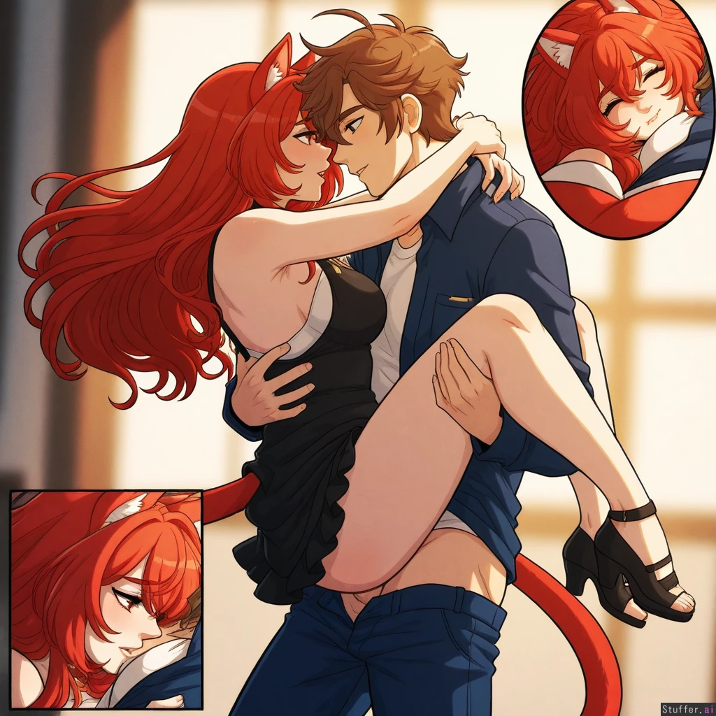 Kinkymations, (couple:2), (passionate sex), (carrying_person):1.5, zoomed out, full body shot, size_difference:1.5