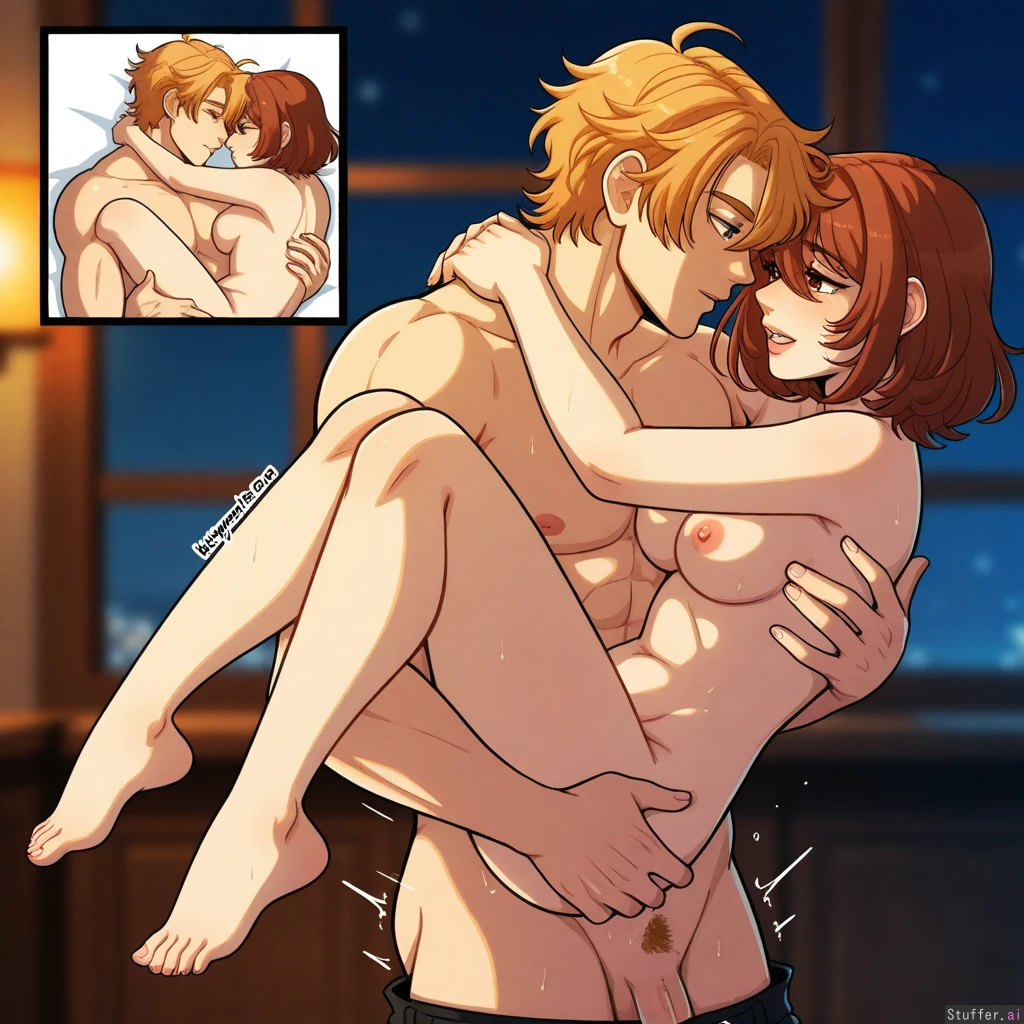 Kinkymations, (couple:2), (passionate sex), (carrying_person):1.5, zoomed out, full body shot, size_difference:1.5