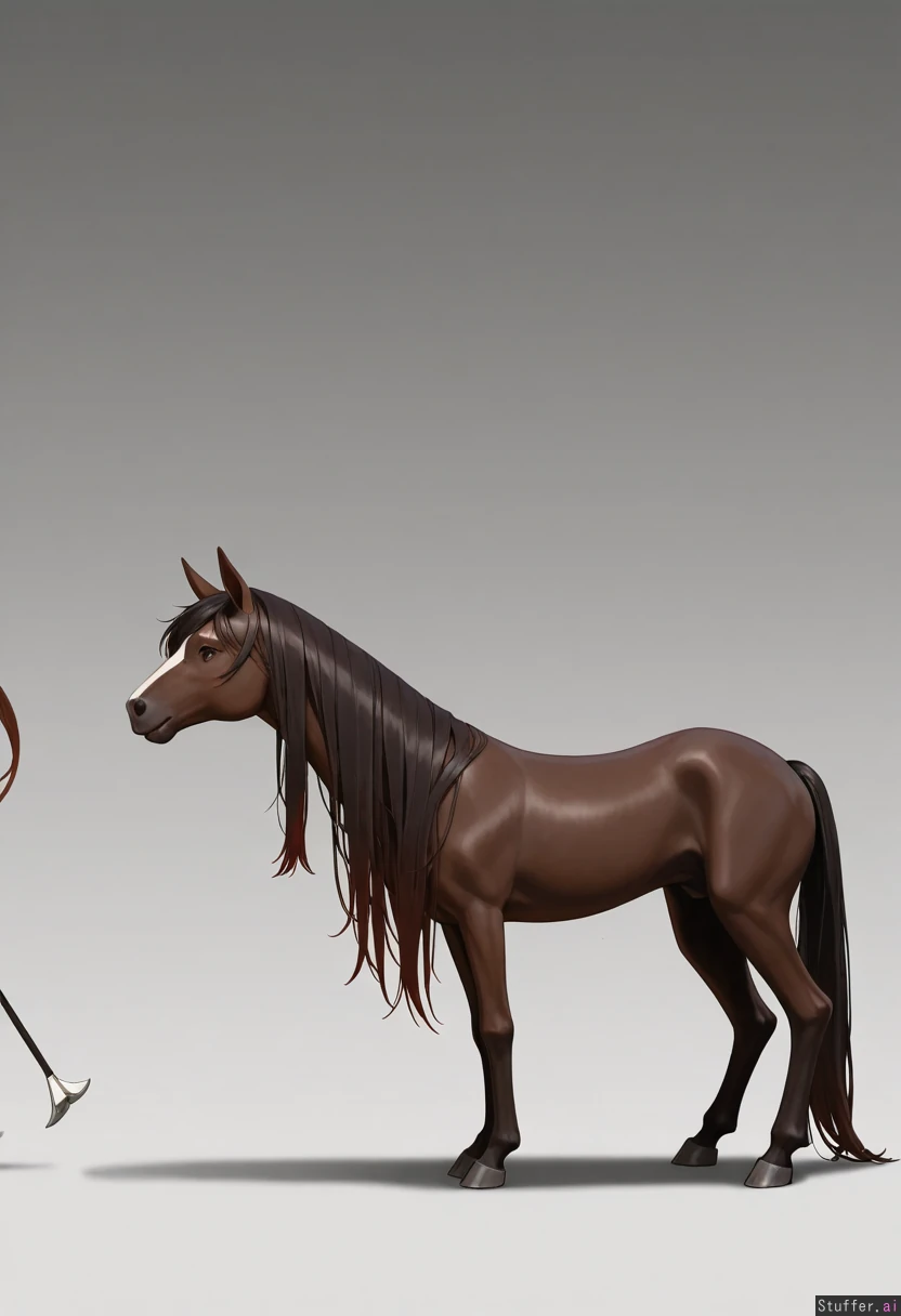 Hu Tao from Genshin Impact, (Horse body:1.8), standing on all fours, full body, (horse face:1.0), side view