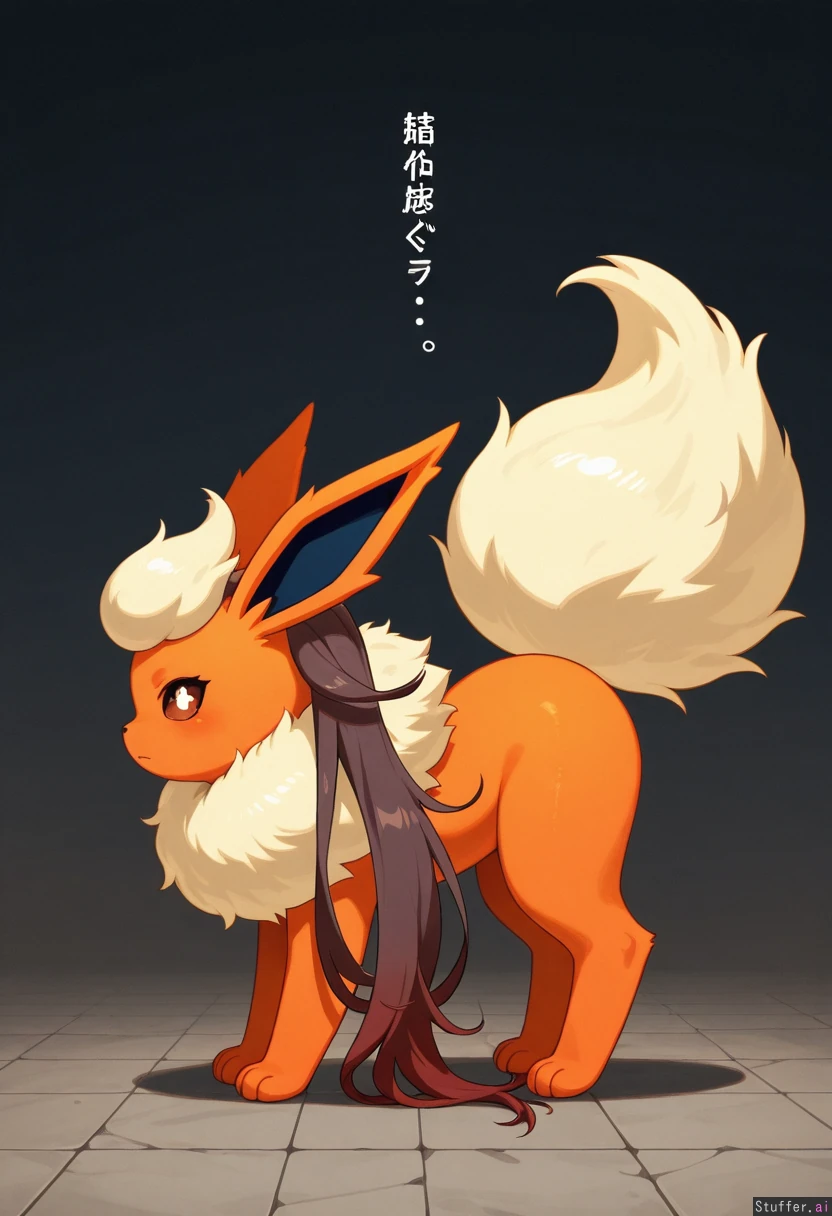 Hu Tao from Genshin Impact, standing on all fours, full body, side view, (flareon body:1.4)