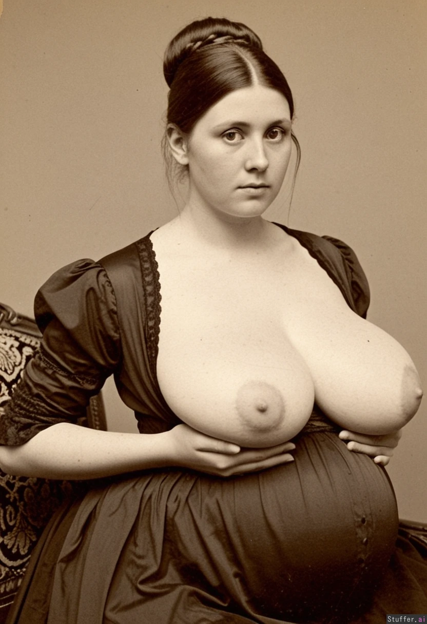 Pregnant beautiful lady in 1866, massive cleavage
