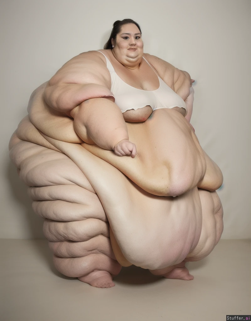 Photo realistic, ultra high quality, japanese ssbbw, beautiful face:1.4, (ultra double chin:1.9), (ultra fat face:1.9), (ultra leg rolls:1.7), ultra huge legs:1.9), (ultra huge arms:1.9), (ultra leg rolls:1.7), (ultra huge arms:1.9), (ultra huge legs:1.9), (small breasts:1.4), wearing a white bra, bare feet:1.4,