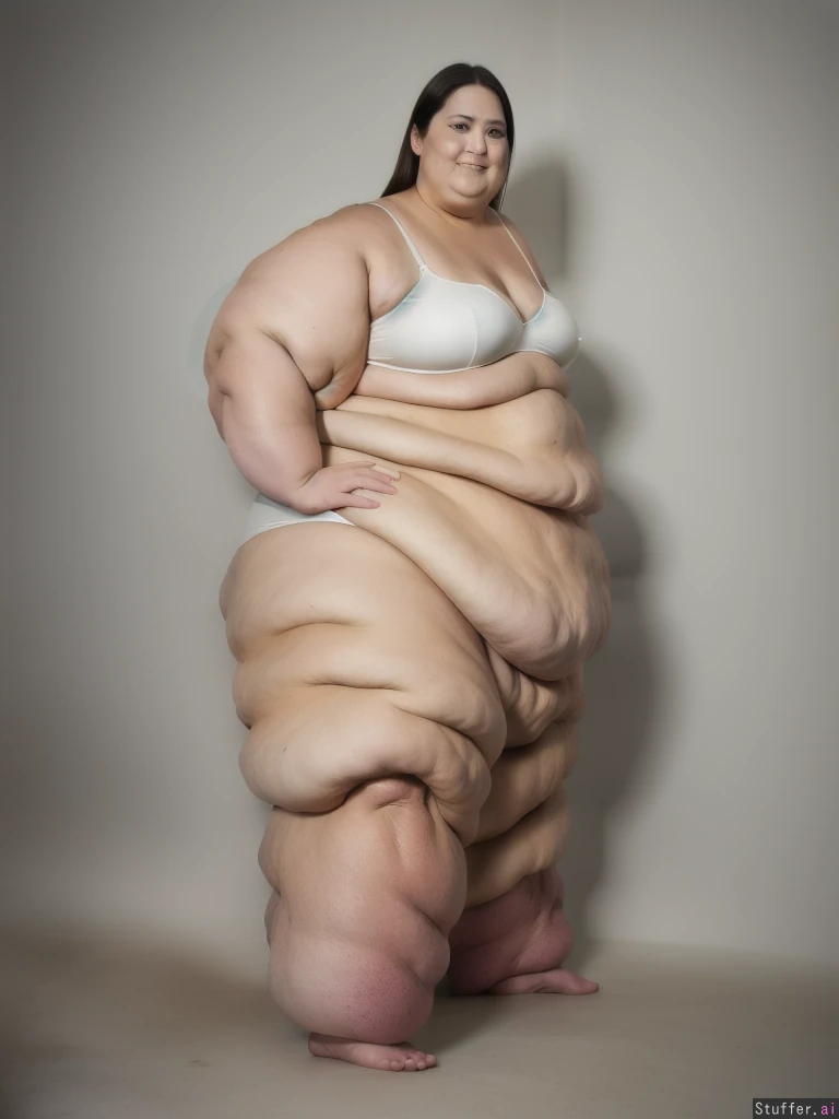 Photo realistic, ultra high quality, japanese ssbbw, beautiful face:1.4, (ultra double chin:1.9), (ultra fat face:1.9), (ultra leg rolls:1.7), ultra huge legs:1.9), (ultra huge arms:1.9), (ultra leg rolls:1.7), (ultra huge arms:1.9), (ultra huge legs:1.9), (small breasts:1.4), wearing a white bra,