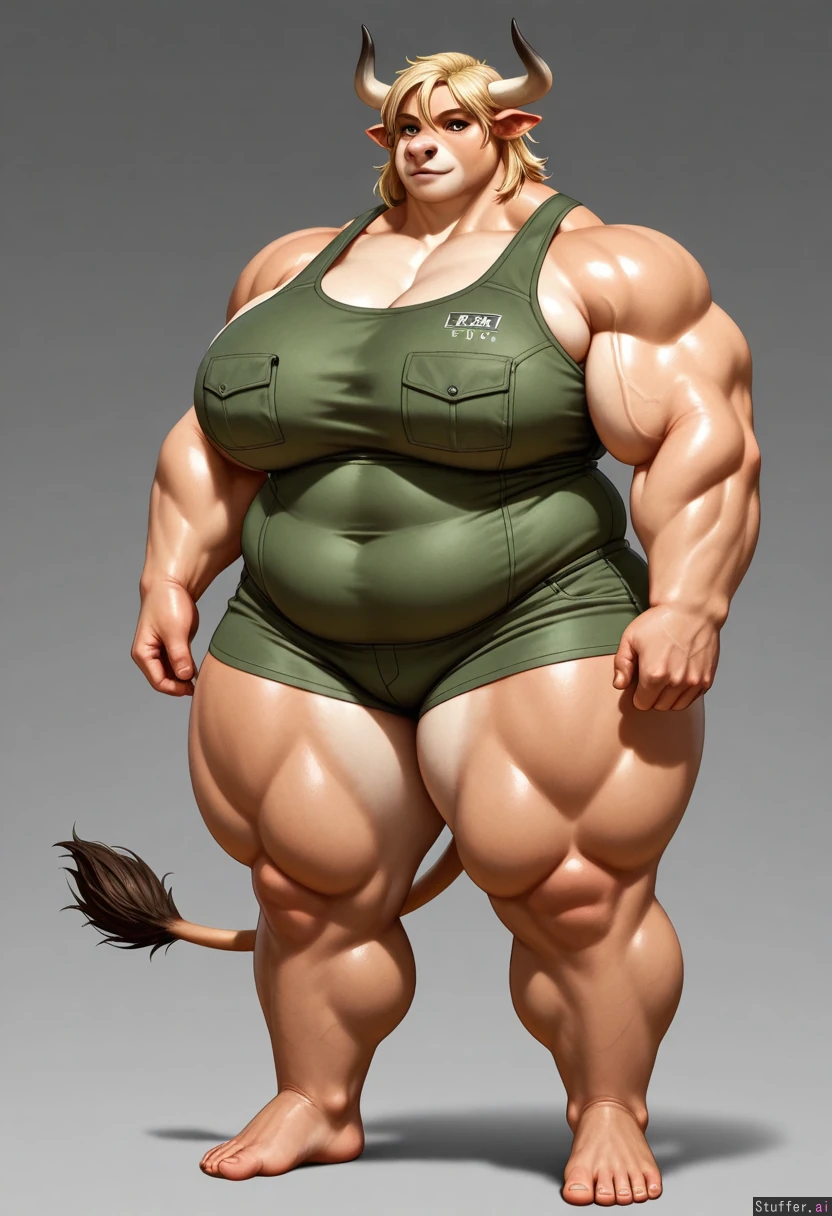 Beautiful, female_anthro_ox_woman, buff_hyper_thicc_obese_body, full_thick_middle, massive_muscles, enormous_thighs, enormous_calfes, thick_legs, thick_arms, thick_hips, semi_photorealistic