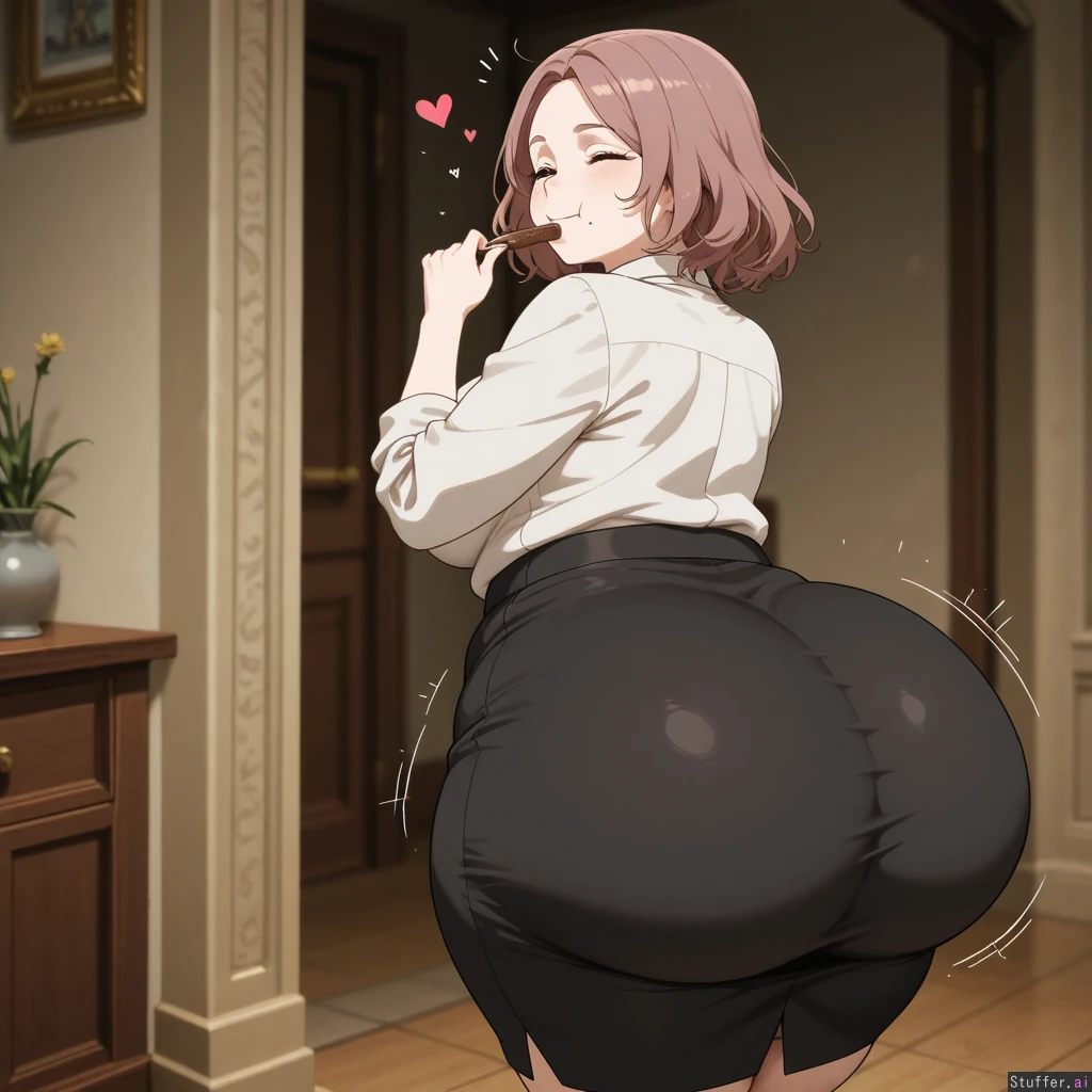 Melina (Elden Ring), her left eye closed, highly detailed, cinematic, loves you, happy, digital art, eating ,getting fat fat_ass, gluttony , secretary, pencil_skirt, ass expansion, chubby, gigantic ass, wide hips