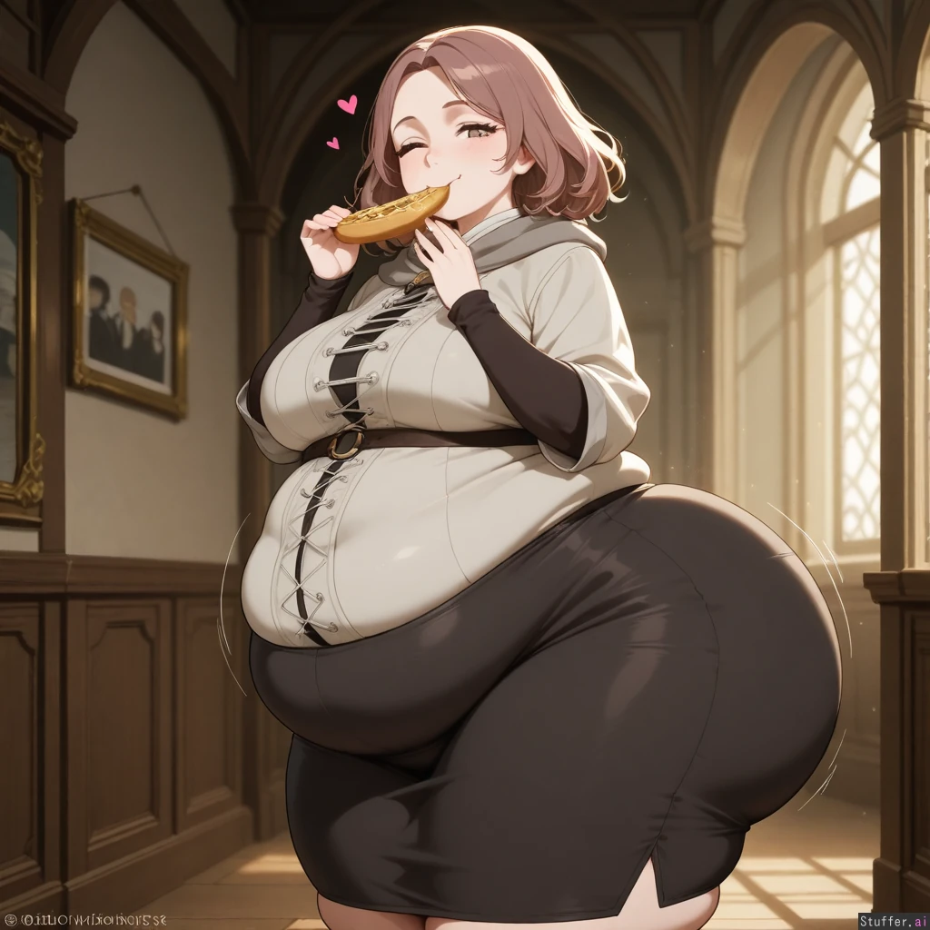 Melina (Elden Ring), her left eye closed, highly detailed, cinematic, loves you, happy, digital art, eating ,getting fat fat_ass, gluttony , secretary, pencil_skirt, ass expansion, morbidly obese, hyper ass, wide hips, chubby_belly,