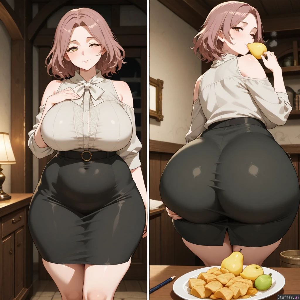 Melina (Elden Ring), her left eye closed, highly detailed, cinematic, loves you, happy, digital art, eating ,getting fat fat_ass, gluttony , secretary, pencil_skirt, ass expansion, chubby, hyper ass, wide hips, chubby_belly, wobbling ass cheeks, seductive, pear-shaped_figure, hips_wider_than_shoulders, gigantic_ass, ass_bigger_than_body
