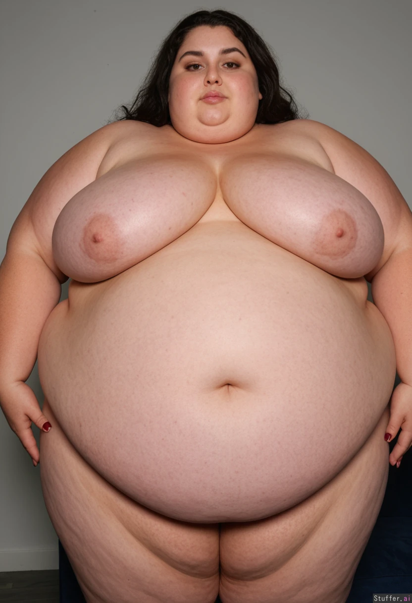((black latina, 25 year old, black wavy hair, plump lips, light makeup)) Beautiful young ssbbw (gorgeous young supermodel face), plump face, fat hands, plump thighs, thick thighs, immobile, struggling to move disbelief, shocked, hungry, fluffy arms, huge thighs, grabbable hips, gripping fatty flesh, hungry, grabbing_own_breast, grabbing belly, big round belly (Curvy:1.24) Thick thighs (Chubby belly:1.1) (Chubby:1.19) Fat belly (Obese:1.1) (Gigantic belly:1.2) (Hyper obese:1.1) (Gigantic blob of a woman:1.8) Huge fat breasts Obese, Fat Arms, Thick Thighs, Doublechin, Huge Belly, Fat Face, Fat Neck, Sagging Breasts, wide shoulders, broad shoulders, early 20s, belly button, Deep belly button (Extremely fat and obese:1.9) (View from above) ((((Huge Soft inflated obese body)))) ((Ultra Huge massively inflated belly)) ((((Hyper gigantic inflated thick thighs covered in thick rolls of fat)))), ((((fattest most massive thighs ever seen)))), ((((extremely massive hyper inflated thighs covered in thick layers of fat)))), ((Bulging love handles)) (((Thick soft arms))) ((((Soft ultra wide hips)))) ((((Ultra pear shape))))