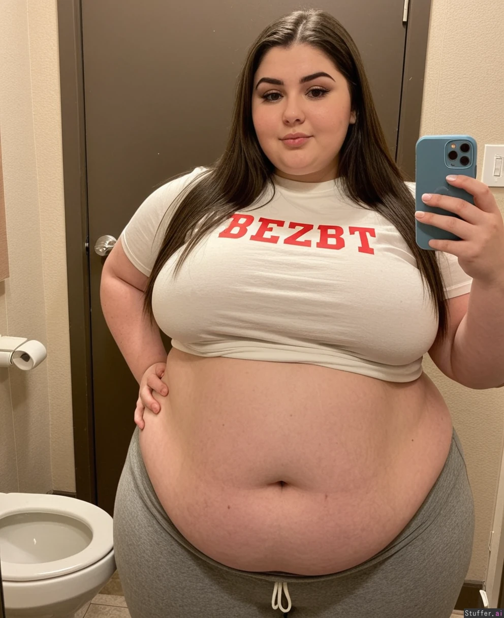 20 year old extremely beautiful armenian girl,((wearing big t-shirt and pants)) navel piercing (((Wide hips))) Soft (Plump) (Fat_belly) Obese Overweight Chunky Thick SSBBW (Huge fat blob) Beautiful lighting Taking selfie in restroom