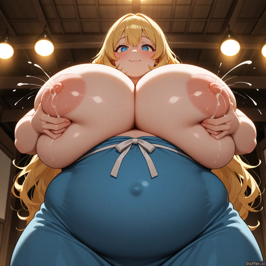 High quality, kipteitei, (detailed lighting), (highly detailed face), (highly detailed eyes), (beautiful), (attractive), multiple obese woman getting fed and pleasured by a harem of pregnant women, drinking her breast milk. main subject: obese, blonde hair, lactation, aroused, squeezing breasts, breasts_out_of_clothes secondary subjects: vary hair styles, drinking breast milk_eruption