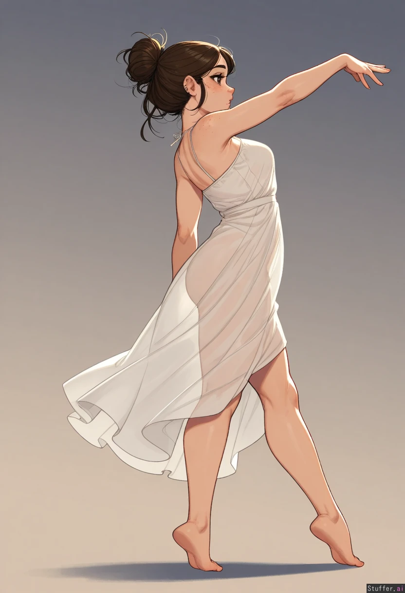 **base** highly detailed, best quality, perfect anatomy, perfect proportions, beautiful face, beautiful eyes, Solo, One girl, dramatic lighting, **artists** Krekkov (artist), KAMII MOMORU (artist), KipTeiTei (artist), **appearance** Brown bangs dark roots, brown eyes, piercings, heavy mascara, freckles, **clothes** Night gown, **setting** **pose** Stood sideways, side view, full body, **expression** **body** (Breast milk leaking: 0.0), (Medium breasts: 0.0), (perky), (pregnant belly: 0.0), (Plump: 0.0), (Thick: 0.8), (Tight chubby belly: 0.0), (Bloated: 0.0),