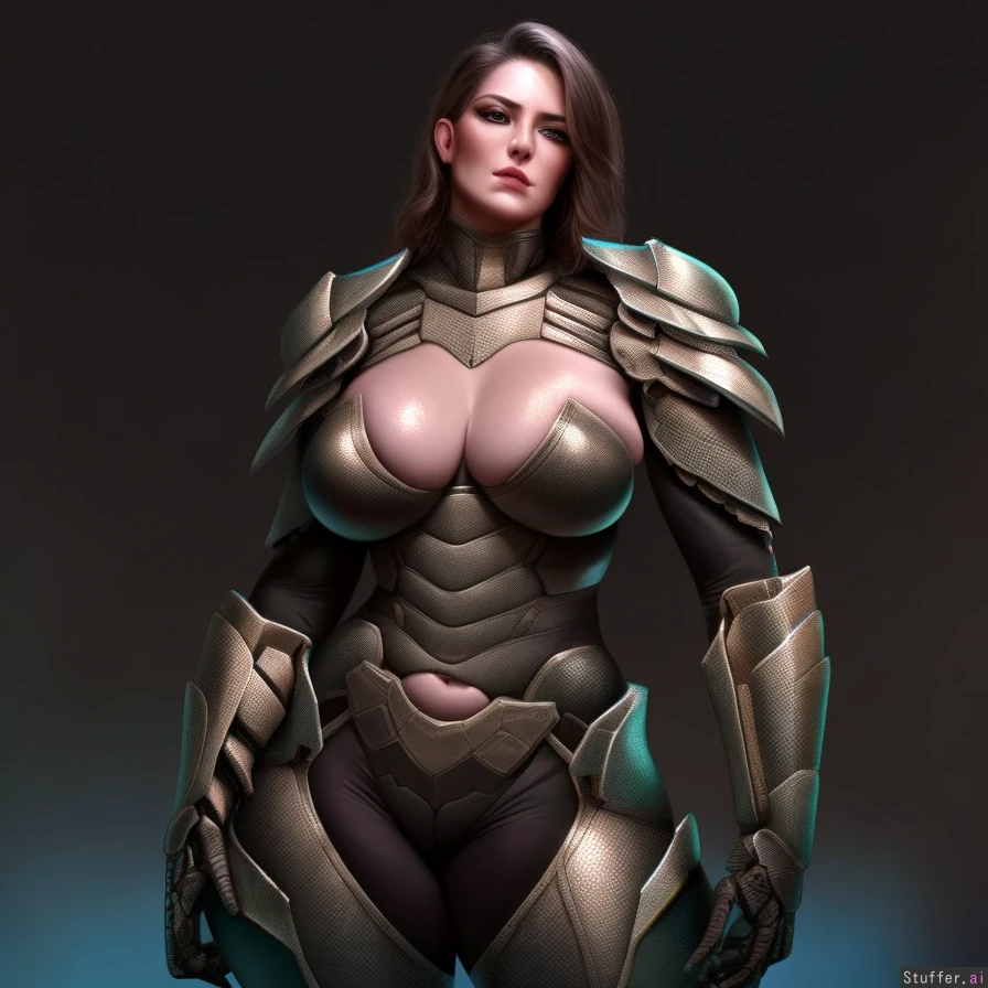 best quality, high rating, (best quality), (high rating), absurd res, high res, detailed, ultra quality, ((high quality)), masterpiece, (ultra high resolution), photorealistic,, detailed face, intricate detail, sophisticated detail, exquisite detail, absurd resolution, correct anatomy, 8k, (highly detailed face), highly detailed skin texture, scifi Fat girl, standing, gripping stomach, big fat soft thighs, full suit of armor, undersized broken leg armor, gaps in broken leg armor, thighs bulging out of gaps in leg armor