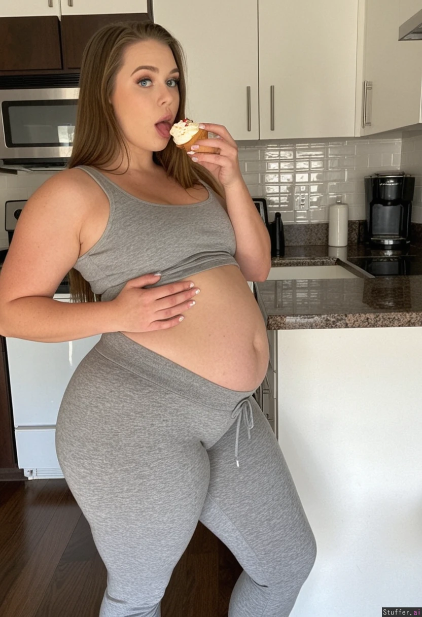 Standing in kitchen eating cupcake