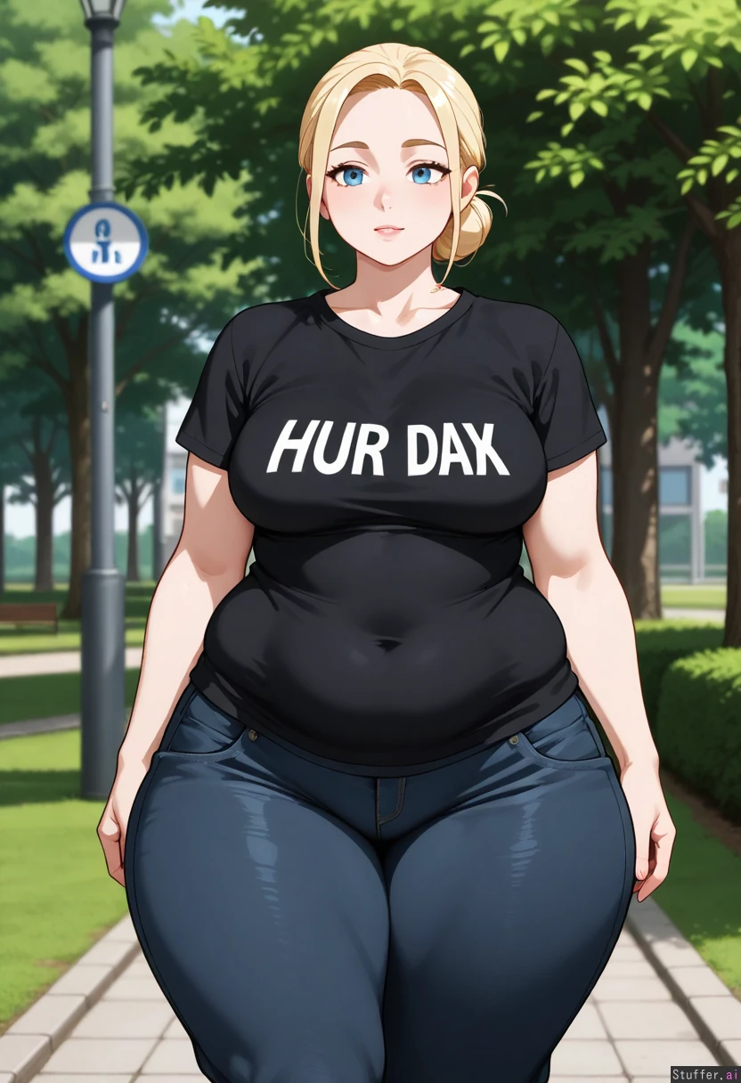 Overweight, medium breasts wide hips, big thighs, wide shoulders,