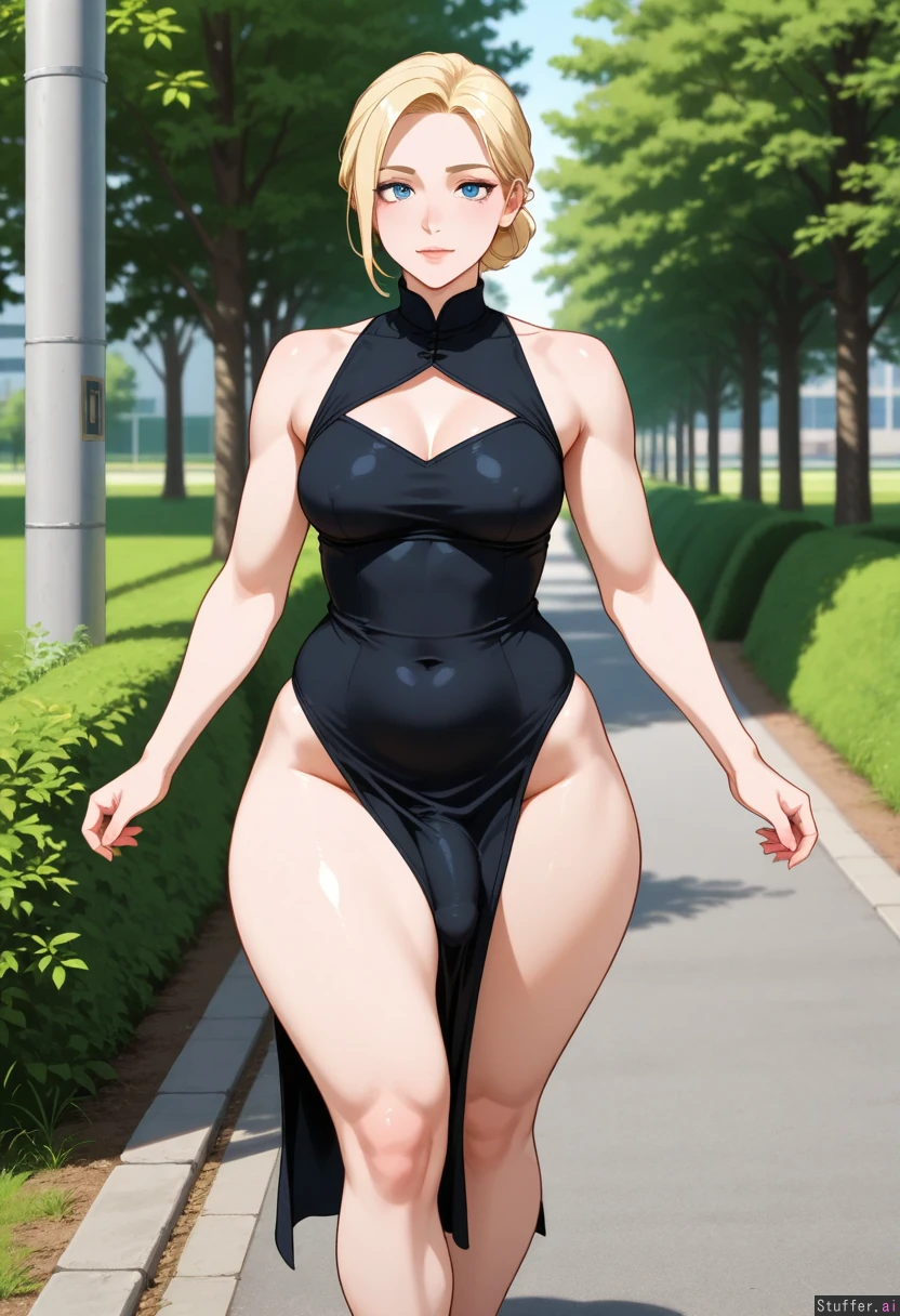 Cute black outfit, penis bulge under clothes