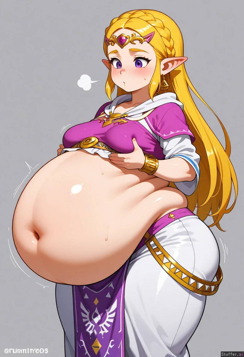 massively obese Zelda , huge belly, flabby belly, small breasts, adult, tall, colossal belly, belly groping