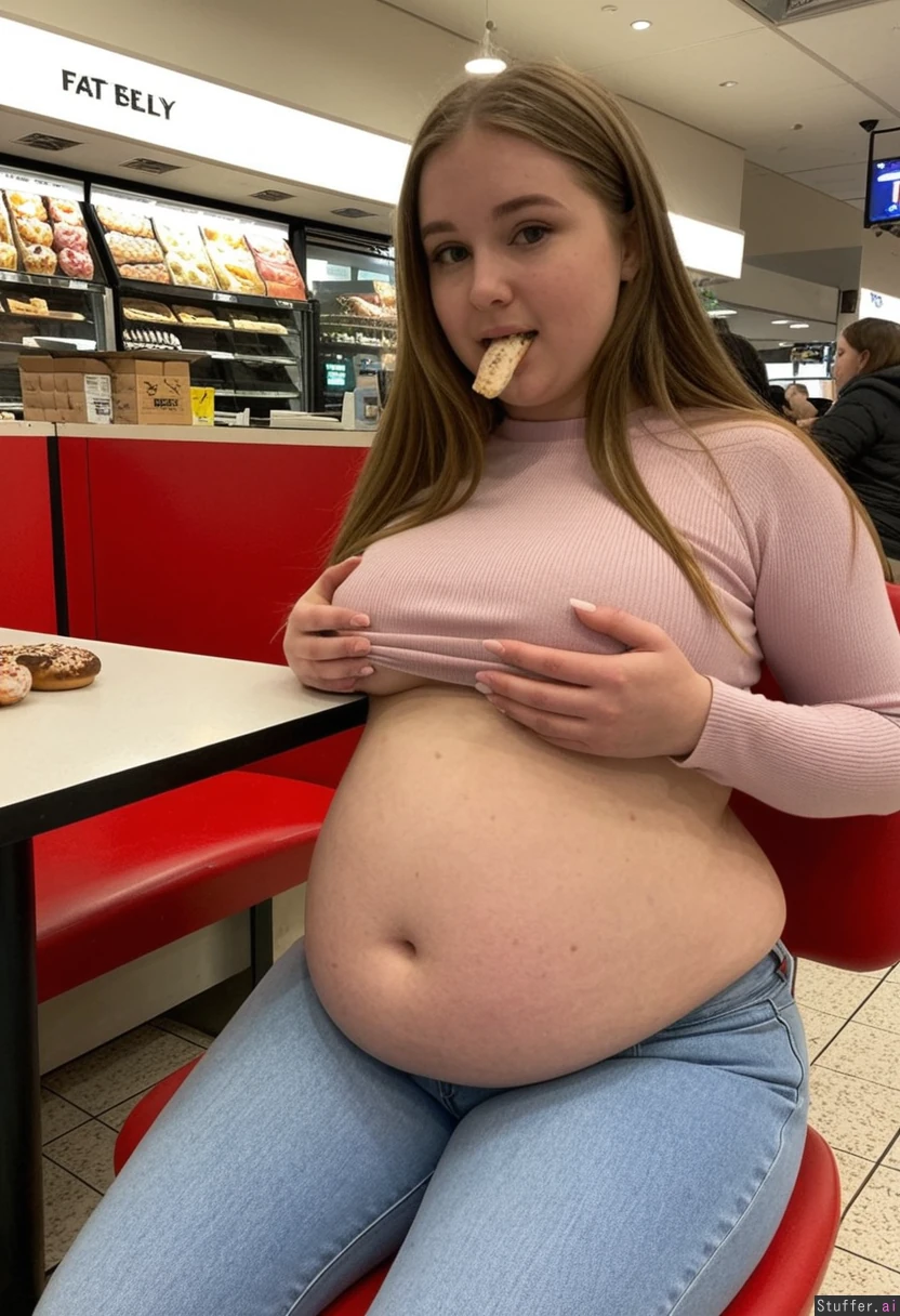 21 year old woman with long brown golden hair in tight long pullover and light blue jeans