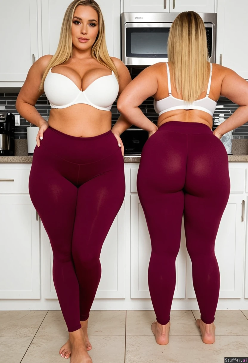 Tall extra curvy woman standing in kitchen