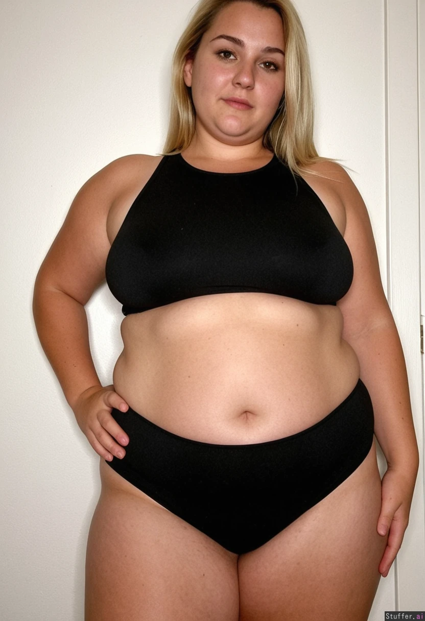 wearing a black bodysuit, full clothed