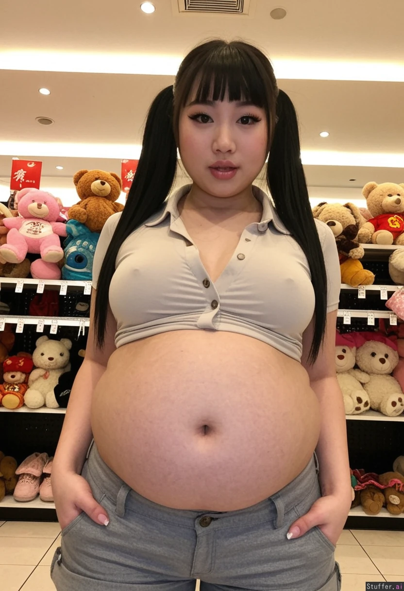 (Showing herself off proudly in mall), (gold digger), (gorgeous stunning very Chinese bad bitch), (chinese bad bitch), bimbofication, 19 years old, (trendy bangs with pigtails), standing, (very hot queen), (ghetto Asian bad bitch makeup), front view, face detail, (spoiled bratty bad bitch), ((Chinese bad bitch)), ((tight gray cargo shorts)), (unbuttoned pants), ((tight expensive beige polo top)), (((bursting open pants))), (fat belly muffintop), ((plus size)), massive wide hips, waist, ((small breasts, flatchest tinybreasts)), (stuffed belly:1.6), (((((unbuttoned))))), (fat:1.8), (big belly:1.4)