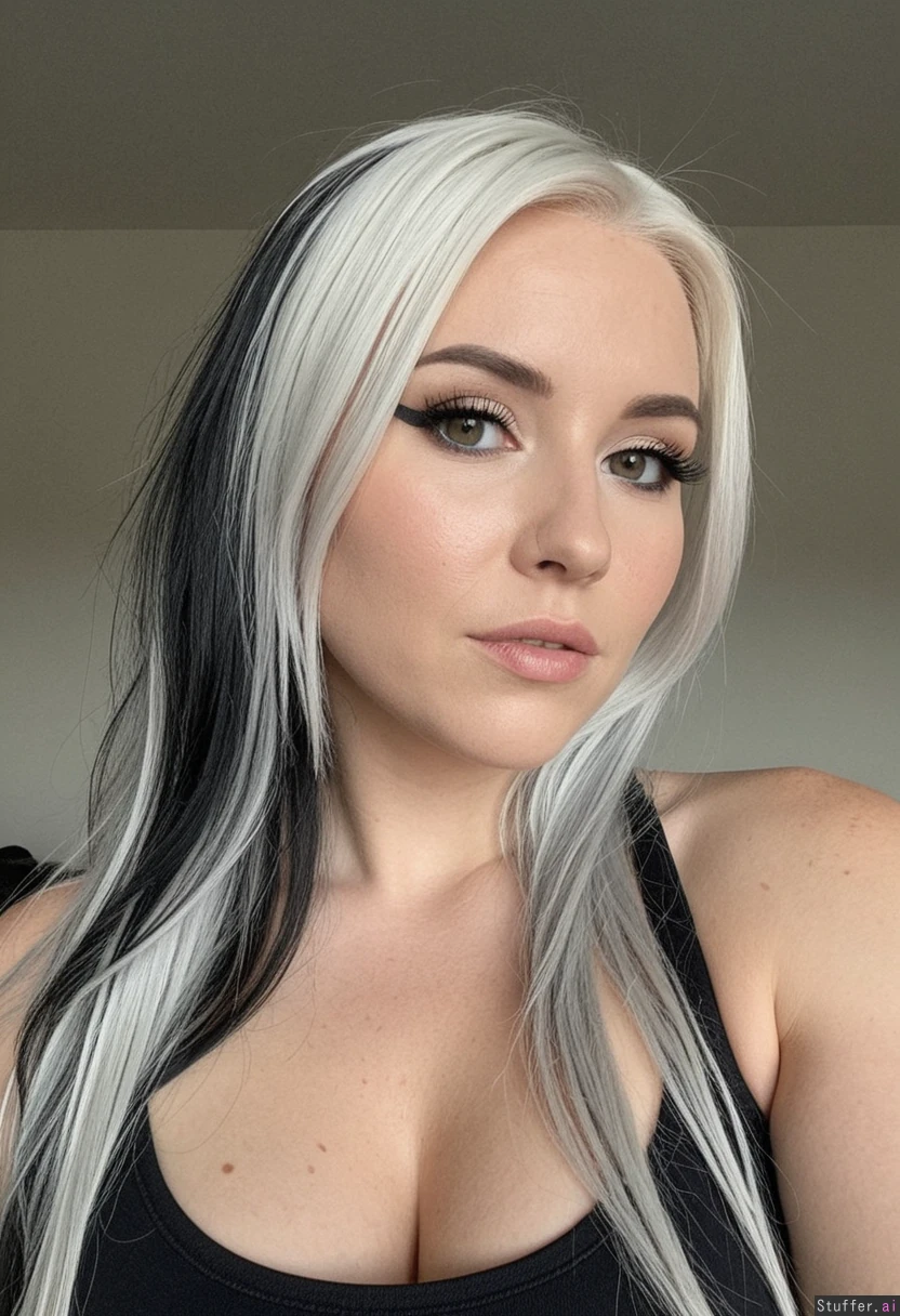 (( solo, 1girl, bushyspicy)) (( white_hair, black_highlights))