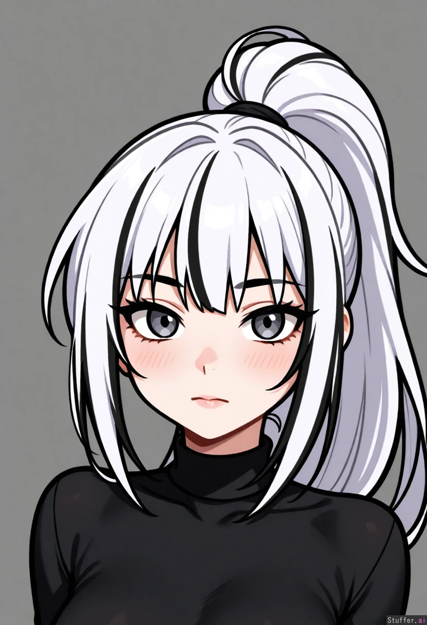 (( solo, 1girl, bushyspicy)) (( white_hair, black_highlights, high_ponytail))