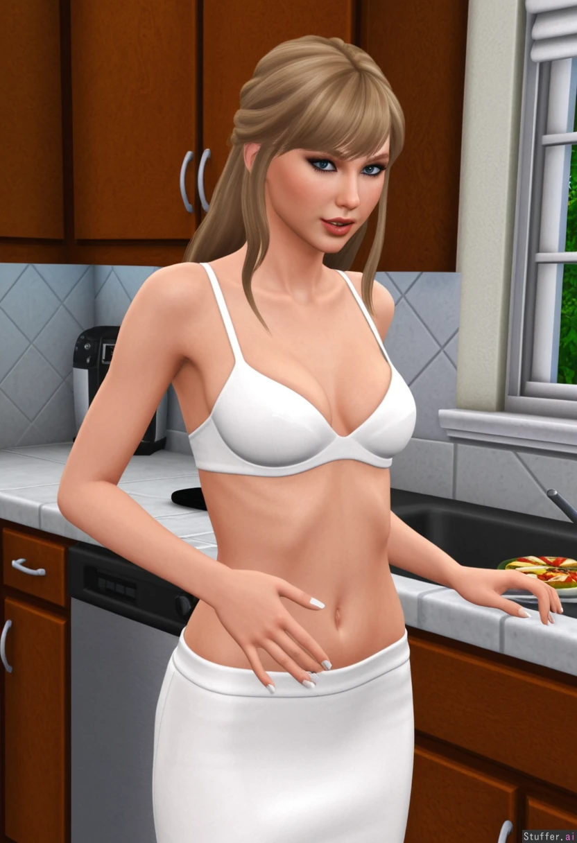 taylor swift, the sims 4, cooking, long hair, tummy, sagging_breats