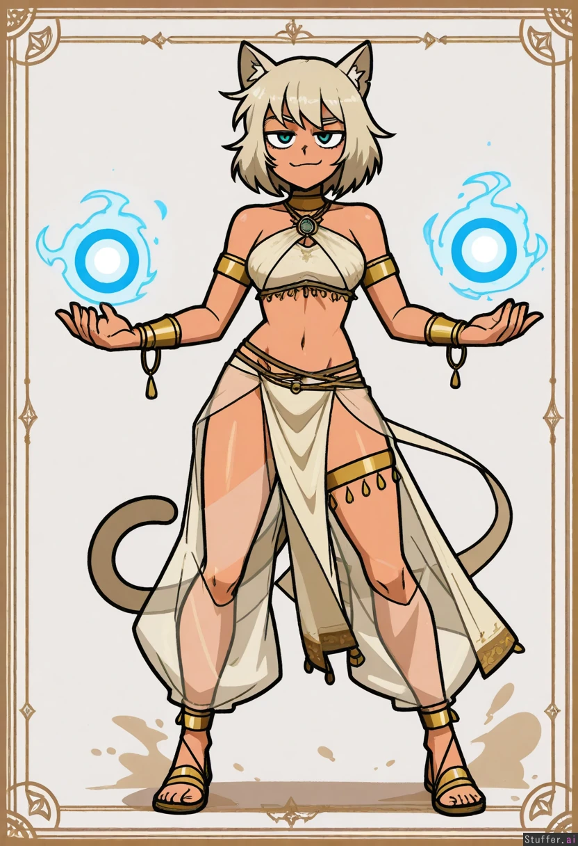 Fantasy, cat girl, dancer, arabic fairy tales, silk clothes, smug, beige hair, glowing magic orb, (wind and sand magic),