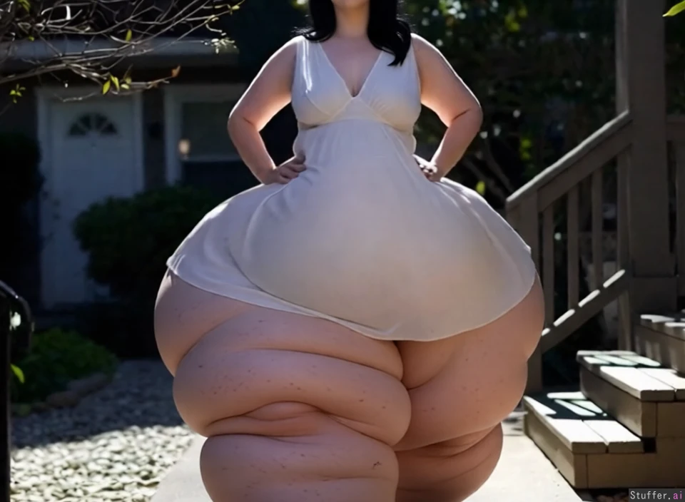 detailed and ultra realistic. make her legs fatter, covered in soft cellulite and fat rolls. Make her hair black, give her winged eyeliner