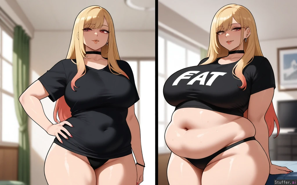 ((Solo, 1 woman)), ((nyantcha)))), (krekkov), c.cu(artist), araneesama(artist), 8k, high resolution, gorgeous, masterpiece, ((flawless)), (((high rating))), ((highly detailed face)), beautiful face, ((((fat female)))), ((((thick milf)))), (((steamy))), (((skindentation))), ((())), ((())), ((((solo_female)))), (()), ((((Marin Kitagawa)))), ((())), ((Black t-shirt, panties)), ((())), (()), (((Fat: 1.8))), ((medium breasts:0.5)), hips and thighs much wider than upper body,bottomheavy,((voluptuous)), ((massive wide hips:1.8)), ((huge fast thighs: 1.8)),sweaty, (((Sexy, sedu6))), ((((())))), living room, kneelin