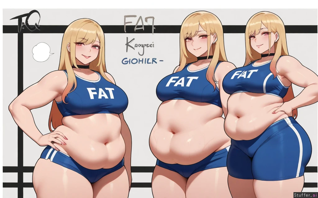 ((Solo, 1 woman)), ((nyantcha)))), (krekkov), c.cu(artist), araneesama(artist), 8k, high resolution, gorgeous, masterpiece, ((flawless)), (((high rating))), ((highly detailed face)), beautiful face, ((((fat female)))), ((((thick milf)))), (((steamy))), (((skindentation))), ((())), ((())), ((((solo_female)))), (()), ((((Marin Kitagawa)))), ((())), ((Gym clothes)), ((())), (()), (((Fat: 1.8))), ((medium breasts:0.5)), hips and thighs much wider than upper body,bottomheavy,((voluptuous)), ((massive wide hips:1.8)), ((huge fast thighs: 1.8)),sweaty, (((Happy))), ((((())))), gym, standing hand on hip