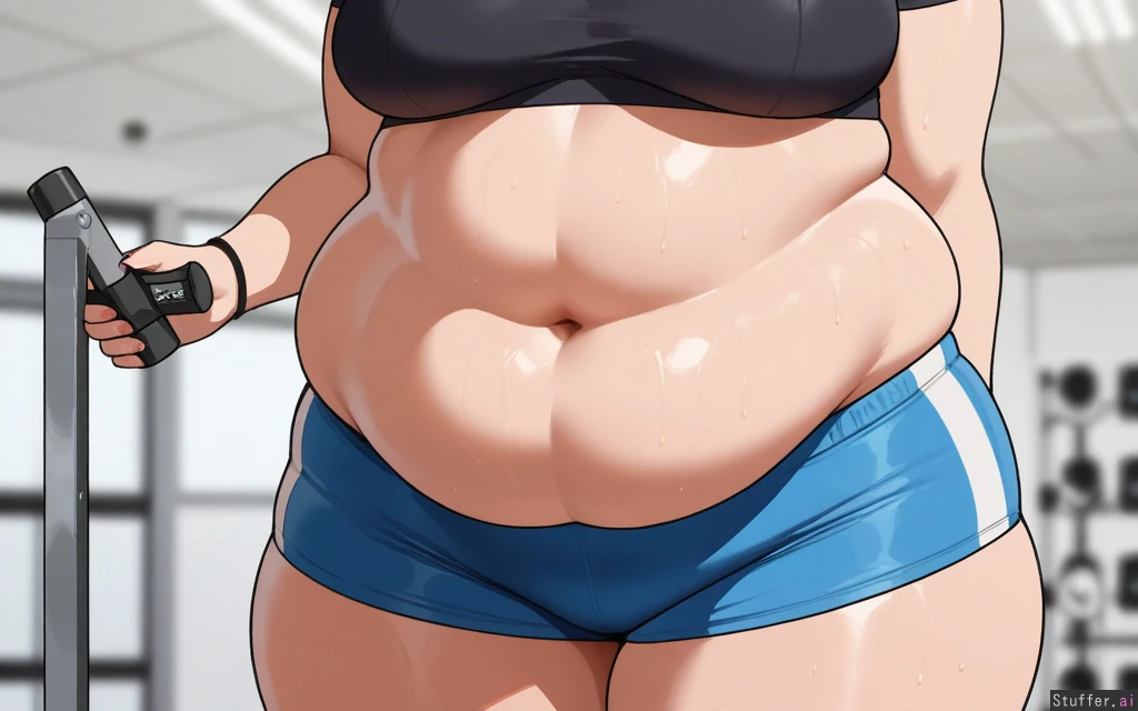 ((Solo, 1 woman)), ((nyantcha)))), (krekkov), c.cu(artist), araneesama(artist), 8k, high resolution, gorgeous, masterpiece, ((flawless)), (((high rating))), ((highly detailed face)), beautiful face, ((((fat female)))), ((((thick milf)))), (((steamy))), (((skindentation))), ((())), ((())), ((((solo_female)))), (()), ((((Marin Kitagawa)))), ((())), ((Gym clothes)), ((())), (()), (((Fat: 1.8))), ((medium breasts:0.5)), hips and thighs much wider than upper body,bottomheavy,((voluptuous)), ((massive wide hips:1.8)), ((huge fast thighs: 1.8)),sweaty, (((Happy))), ((((())))), gym, standing