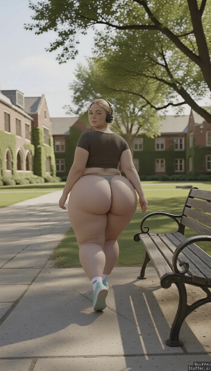 High quality, masterpiece, realistic lighting, high detail, really pretty faces, fatter and fatter, she jiggle a bit, she swiftly walks and turns, keep her entire body in frame, saddlebag hips, full body view, camera pulls away, wide angle