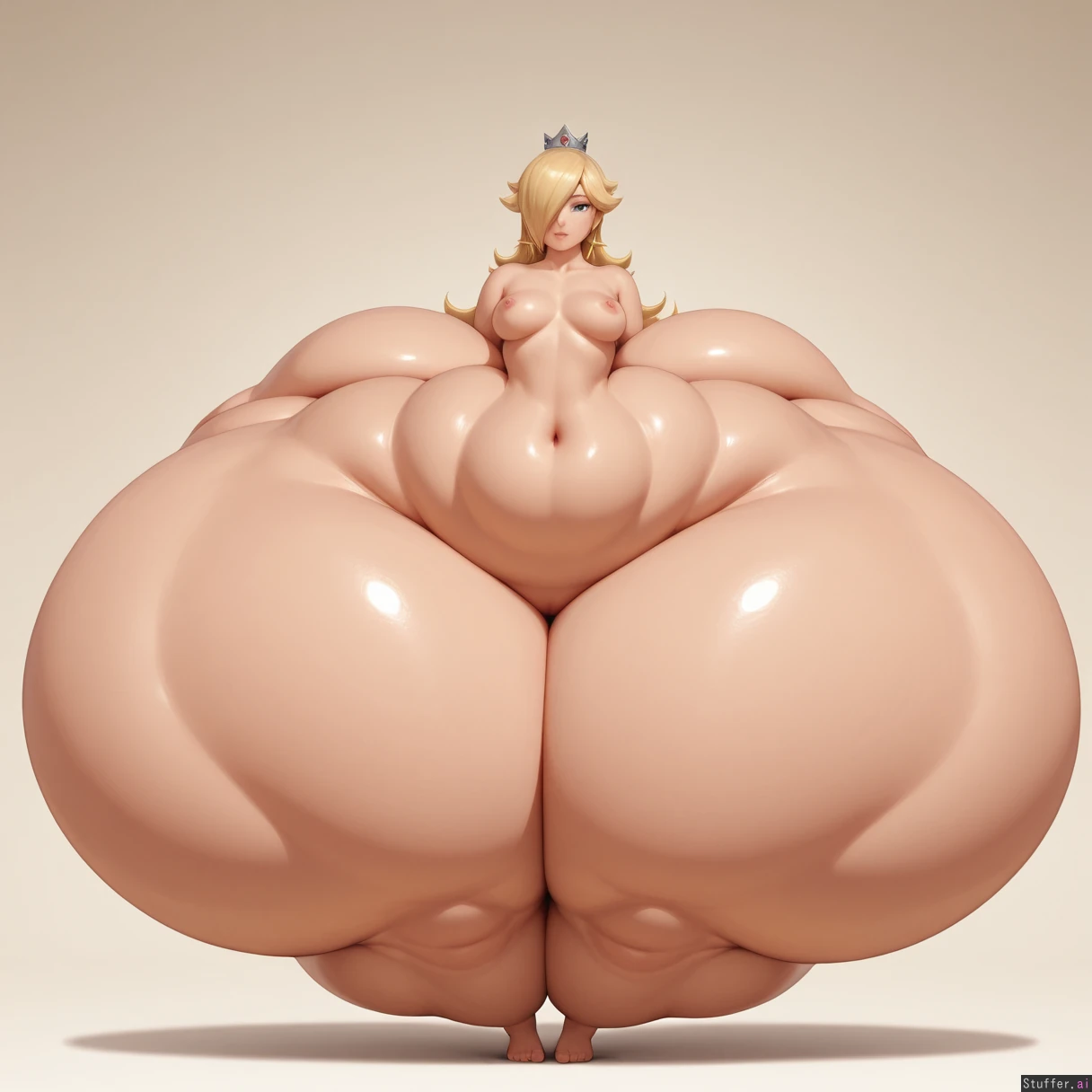 Solo, 1girl, (thin waist:1.9), thick fat thighs, large wide round hips, princess rosalina, hungry, horny, seductive, (nude), small breasts, medium nipples, (medium vagina), (solo, masterpiece, best quality, photorealistic), hyper hips:1.9, hyper thighs:1.9, (gigantic hips:1.9), (gigantic thighs:1.9)