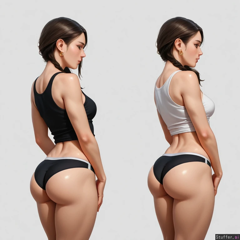 Standing, side view, ass crease, well defined butt, bottom butt crease, black panties, tank top, earrings, cute face,