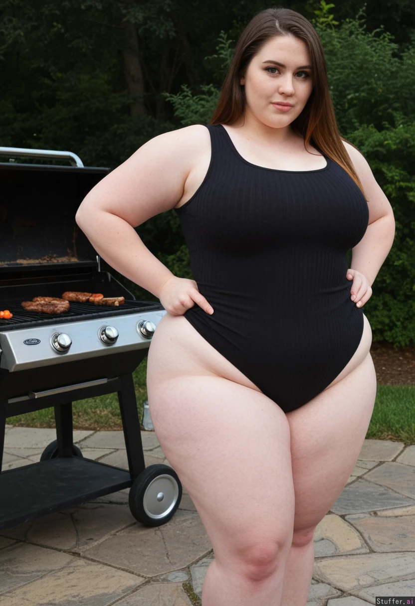 perfect anatomy. ((((candid)) amateur photograph with good lighting)) of ((hot instagram model girl)) with a (cute seductive face) at a barbecue. she is wearing a skin-tight form-fitting ribbed dress. she is a chubby ((american model)) with ((huge wide hips)), a (thin waist), and (((huge thunder thighs))). she has a bloated belly. perfect proportions. she is a shy good girl.