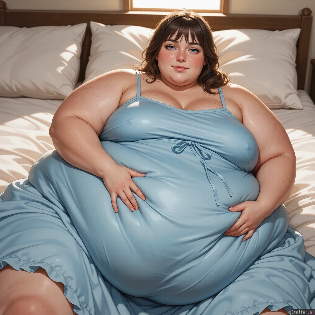 make her face, body, and background look more detailed, lifelike, and photorealistic. Extremely morbidly obese 20 year old.