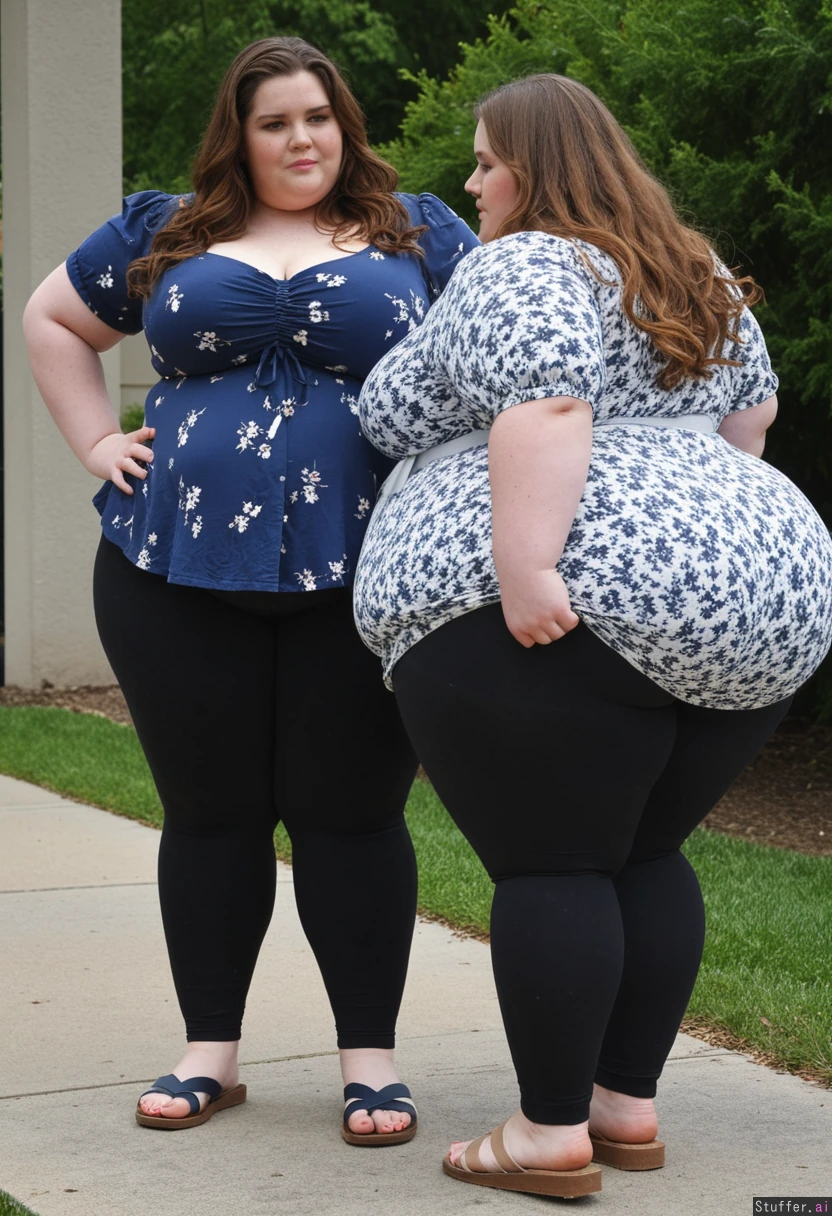 Candid photo, Overcast day 23 year old very oversized morbidly obese fat ssbbw, light brown hair, brown eyes, Oversized tight blue peplum Floral blouse, oversized stretched long charcoal leggings, standing, friends noticing recent weight gain, gorgeous, tight waistband, gorgeous, sandles, beautiful, sandles, candid photo, white ribbon belt, Side view Long massive blouse Long wavy hairstyle Fat puffed up love handles Friends looking in shock at weight gain Friends giggling Daytime Fully clothed, fully covered, friends looking at weight gain, very bloated, Lumpy love handles Side view Gut sticks out very fat in front Big leggings Big blouse Painfully bloated gut Hyper fat arms Massive love handles Big fat chunky legs Enormous fat soft love handles Friends looking at recent weight gain Massive huge leggings Massive blouse Very bloated Ultra chunky love handles Enormous belly Really bloated gut Huge gut Hyper massive fat love handles Bloated gut Oversized blouse Oversized leggings