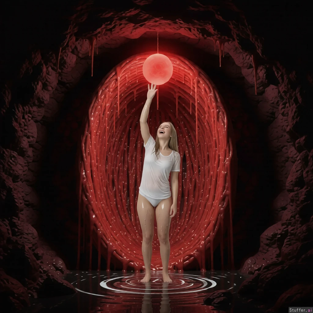 The girl is wet. There is water on the floor. The girl is wearing her clothes.