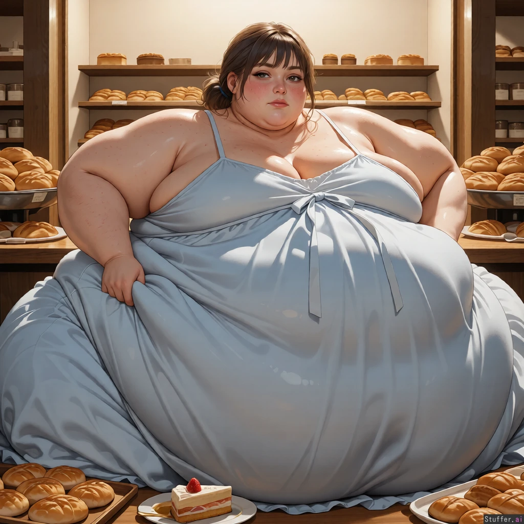 make her face, body, and background look more detailed, lifelike, and photorealistic. Extremely morbidly obese 20 year old