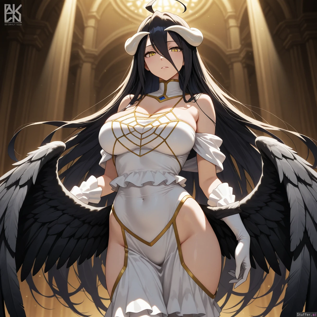 Beautiful shading, highly detailed, best quality, perfect anatomy, perfect proportions, perfect lighting, (best quality), (high rating), absurd res, high res, detailed, ultra quality, ((high quality)), masterpiece, (ultra high resolution), anime style, stunning beauty, detailed face, intricate detail, sophisticated detail, 1girl, exquisite detail, absurd resolution, correct anatomy, 8k, (highly detailed face), Albedo_(Overlord), (obese:0.5)