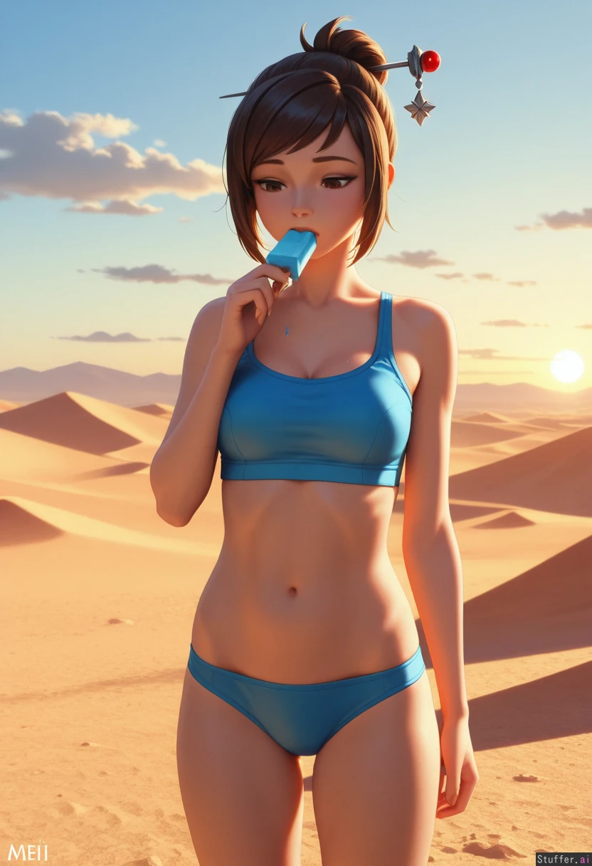 best_quality, hdr, overwatch, mei, clouds, desert, daytime, exhausted, eating, ice_cream, cone, (skinny:1.0), (tall:1.0), (overweight:0.8), (wide_hips:0.8), (bottom_heavy:0.8), (belly:0.8), (contrast), (solo:1girl)