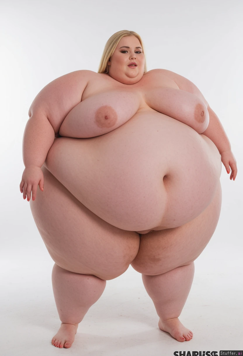 Very beautiful very fat blonde ((model)) in a photographic studio, wearing a once baggy shirt, a massively bloated and swollen huge belly (((((SSBBW shapeless blob body))))) Gorging and stuffing herself with food. Posing for a (((very super sexy feedism fetish photo shoot))). (((Getting more and more stuffed and bloated)). ((Medium long shot full body view)). (((((Getting fatter and fatter))))) (((Back profile body view shot))) (((Lying down flat on the floor legs wide apart))). (((Gasping and sweating with effort)). Food all around.