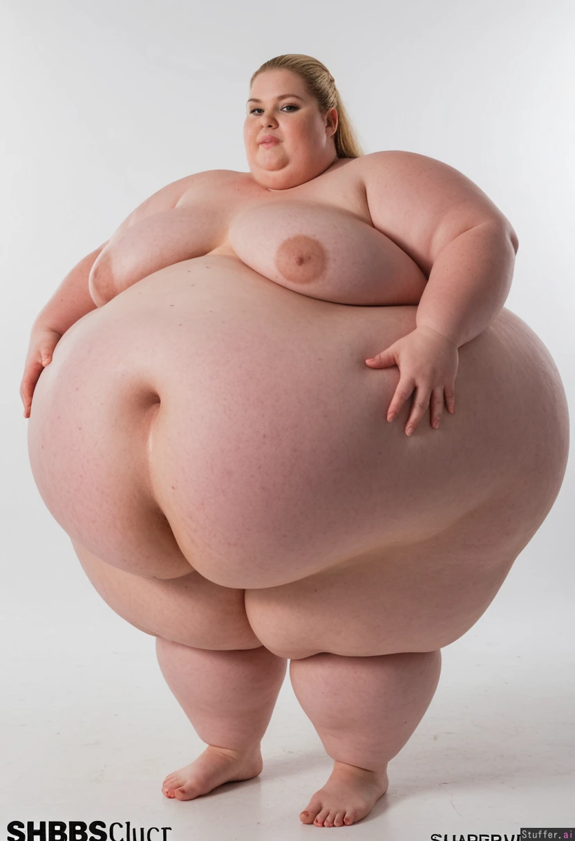Very beautiful very fat blonde ((model)) in a photographic studio, wearing a once baggy shirt, a massively bloated and swollen huge belly (((((SSBBW shapeless blob body))))) Gorging and stuffing herself with food. Posing for a (((very super sexy feedism fetish photo shoot))). (((Getting more and more stuffed and bloated)). ((Medium long shot full body view)). (((((Getting fatter and fatter))))) ((( Back profile body view shot))) (((Standing))). (((Gasping and sweating with effort)). Food all around.